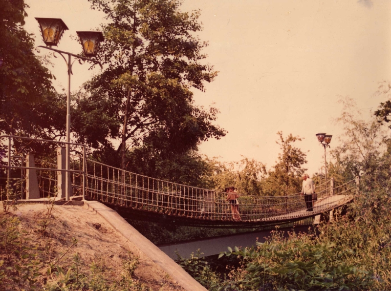 Vom Werk VEB IMO (Industriemontagen) wird die Hängebrücke, die 17m lang und 1,5m breit ist und in der Nähe des Scherbelberges über die Parthe führt, in ihr Betonbett gehoben und bald darauf eingeweiht.